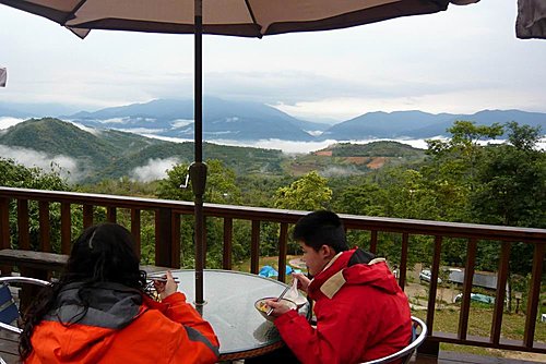 雨停了,風吹散了霧氣,一邊享受早餐,
