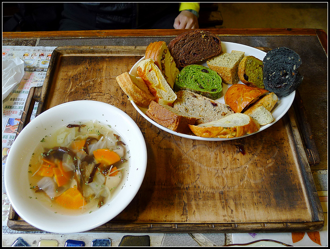 ↓老婆點的招牌麵包套餐,五顏六色的繽紛色彩、