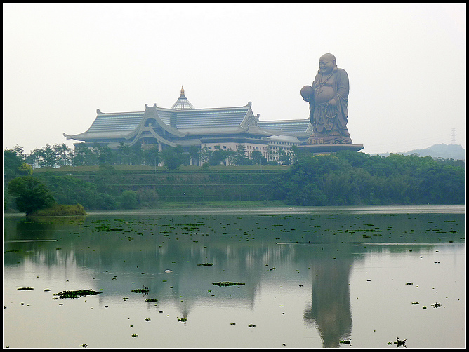 ↓這湖畔也有些觀景平台,可以看到遠處的彌勒佛